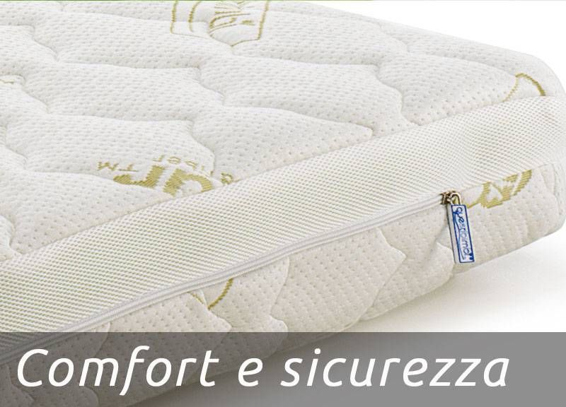 La speciale lastra alveolare DRYSENSE con la fascia perimetrale traspirante tridimensionale costituisce l'esclusivo Sistema Integrato Antisoffoco SIA di Questibimbi.